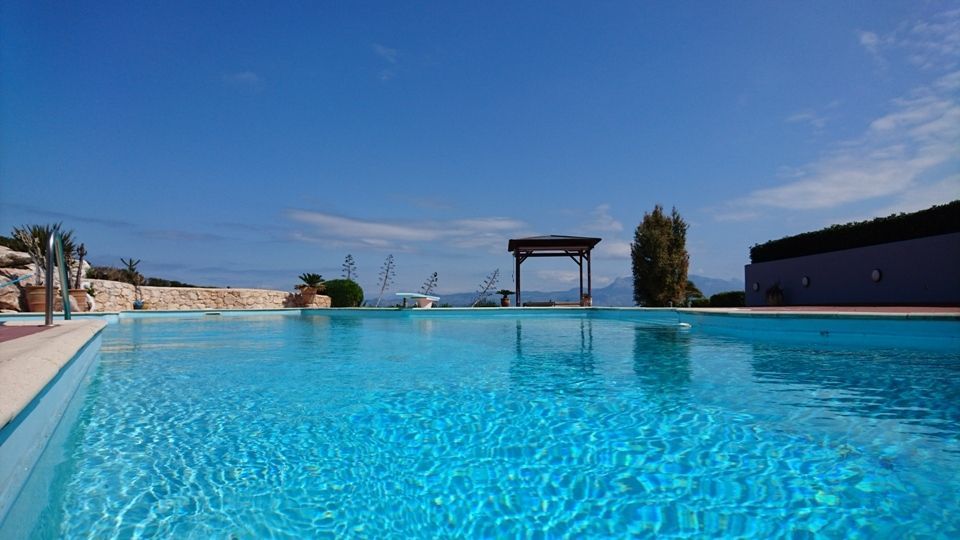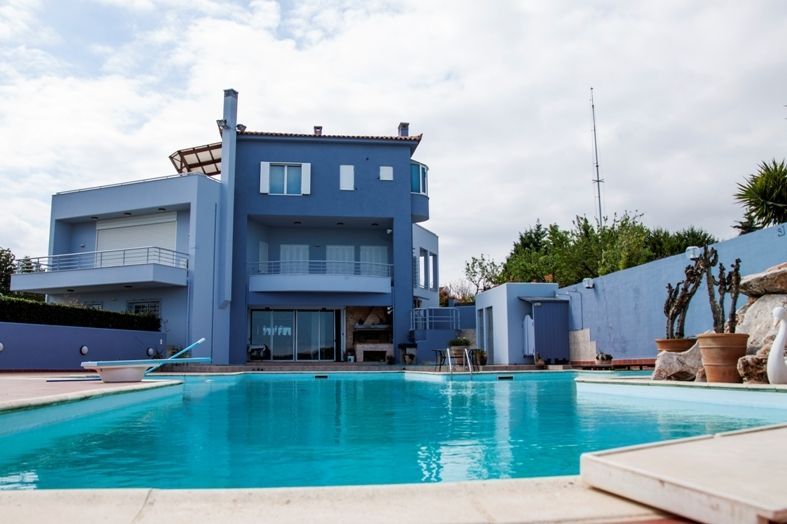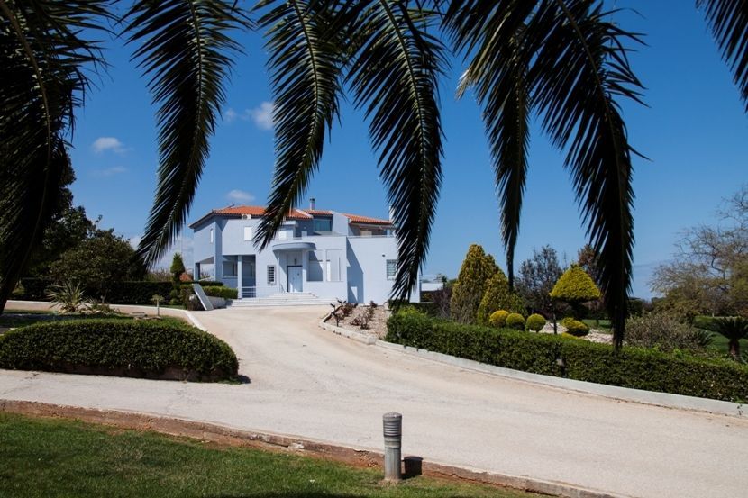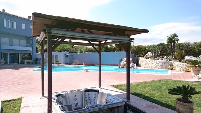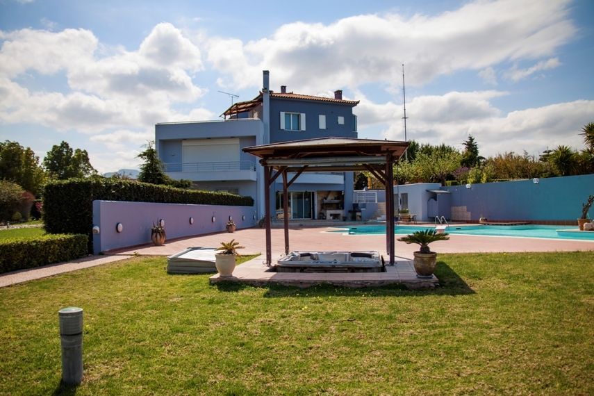 σε οικόπεδο 10.000 τ.μ., με κήπο 2.500 τ.μ., πισίνα 160 τ.μ. 20Χ10, με μπαρ στην πισίνα και ντους, εξωτερικό τζακούζι για 8 άτομα και χώρο μπάρμπεκιου