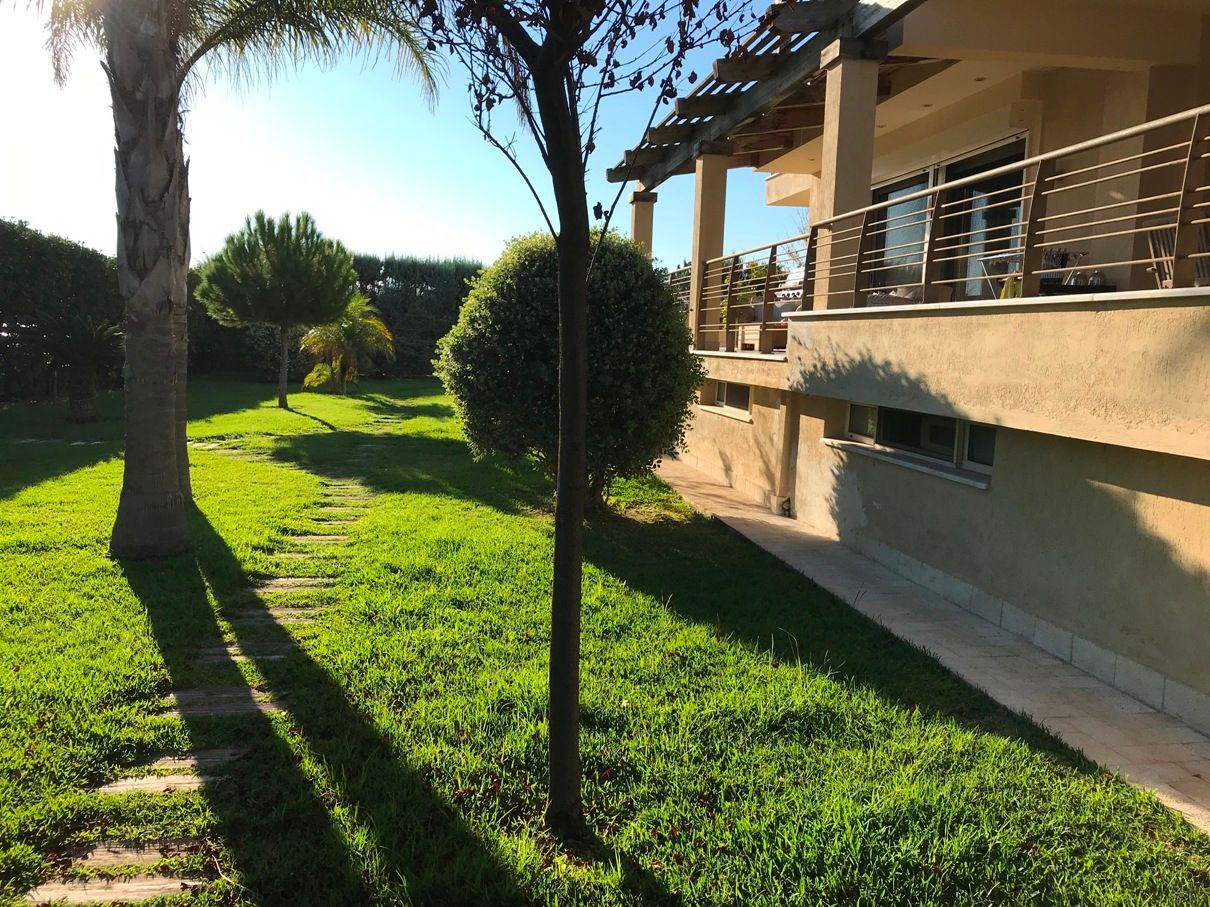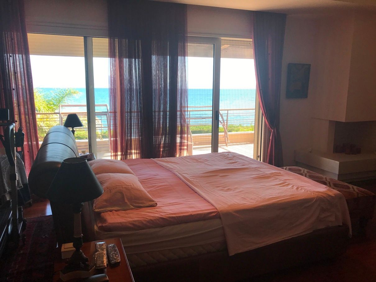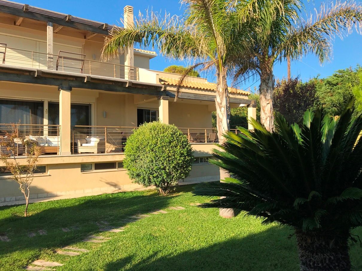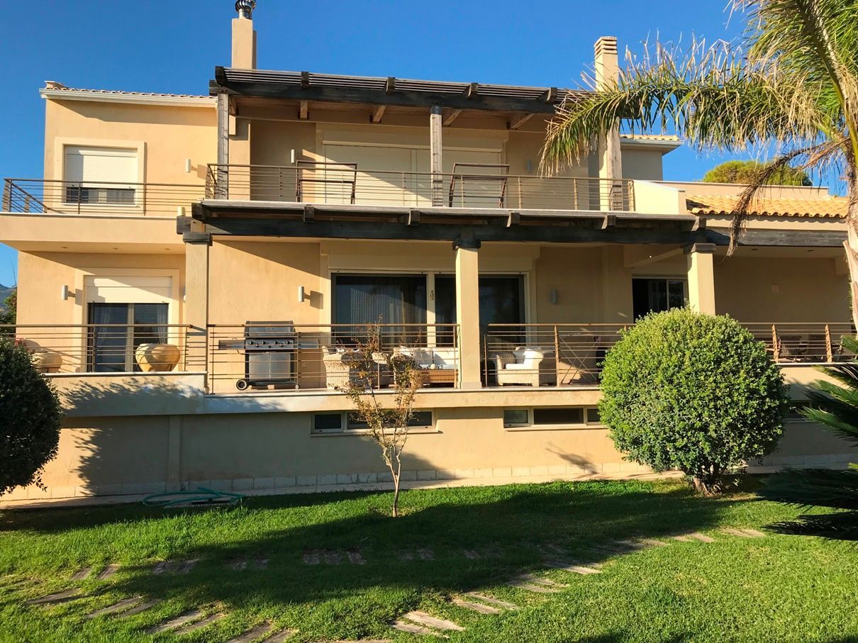 Παραθαλάσσια Βίλα 360 τ.μ., σε οικόπεδο 1.280 τ.μ., εντός σχεδίου, με 45 μετρα πρόσοψη στη θάλασσα, 4 επιπέδων, με ασανσέρ, 5 Υ/Δ (1 master), dressing room, 4 μπάνια (2 jacuzzi), 1 γραφείο, play room, σαλόνι, τραπεζαρία, κουζίνα με εντοιχισμένες ηλεκτρικές συσκευές Miele και πάγκο χαλαζία, κουφώματα αλουμινίου βαρέως τύπου με ανάκληση, διπλά τζάμια, σίτες, ηλεκτρικά ρολά ασφαλείας βαρέως τύπου, αυτόνομη με ενδοδαπέδια θέρμανση, Boiler, αυτόνομο σύστημα κλιματισμού σε όλους τους χώρους, σύστημα συναγερμού, κάμερες ασφαλείας, τηλεφωνικό κέντρο, δίκτυο Data - δορυφορική TV, 4 πάρκιν, μεγάλος κήπος με γκαζόν- φυτά, αυτόματο πότισμα κήπου, δεξαμενή νερού 1 τόνου, δίκτυο ύδρευσης, ιδιωτική γεώτρηση, BBQ κλπ., δυνατότητα κατασκευής πισίνας, ασφαλής περίφραξη με μπετόν και μασίφ ξυλεία, το εσωτερικό της οποίας ενισχύεται με υψηλά λέυλαντ κ.ά φυτά.