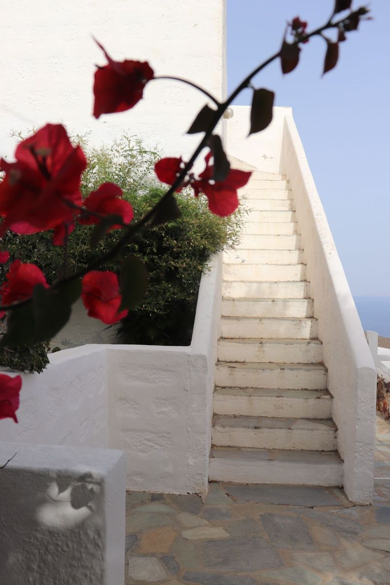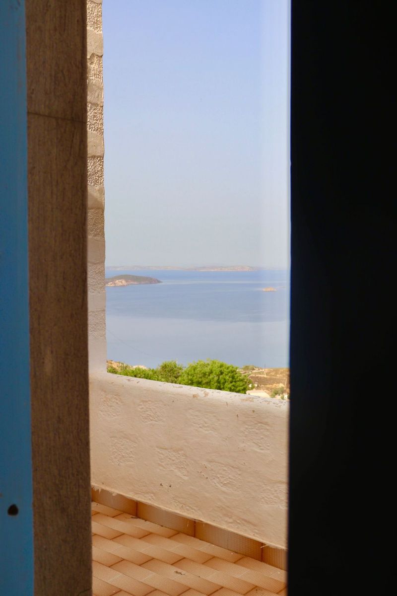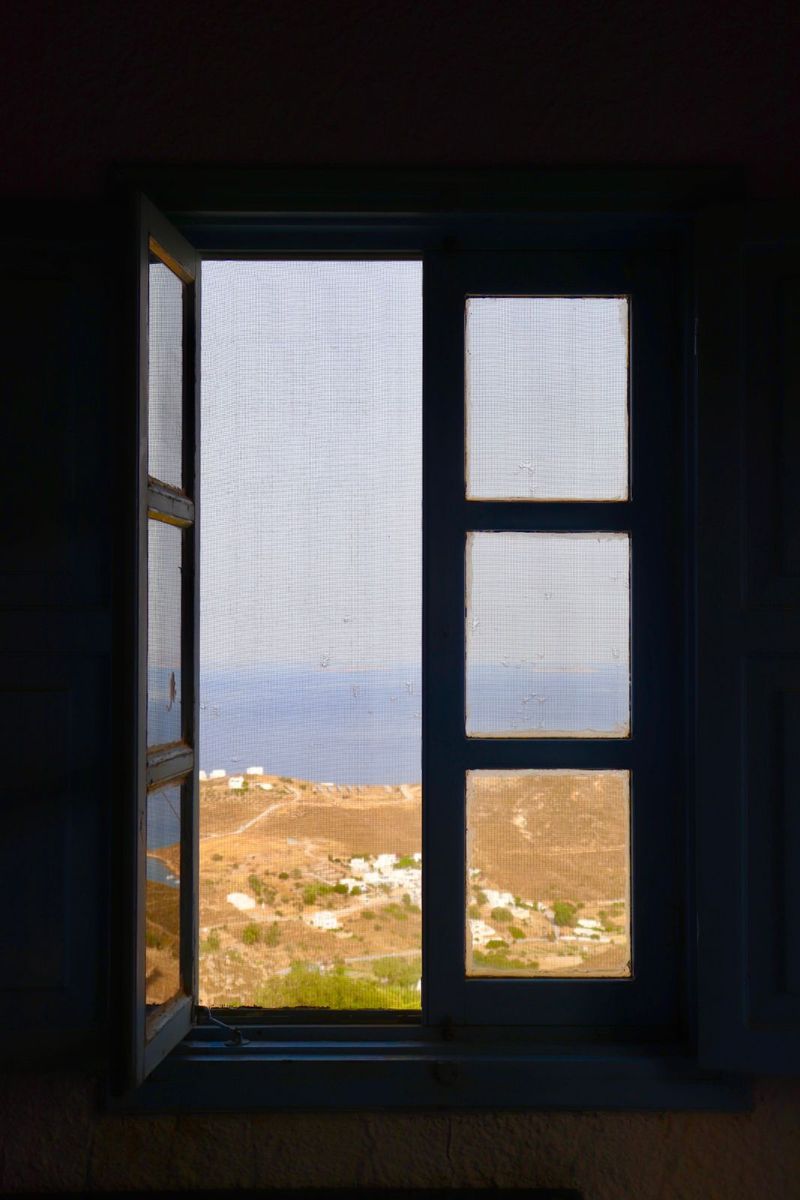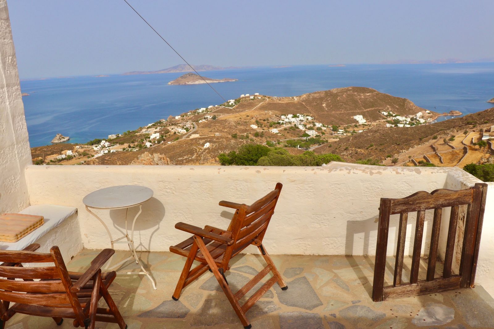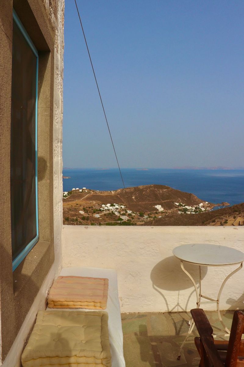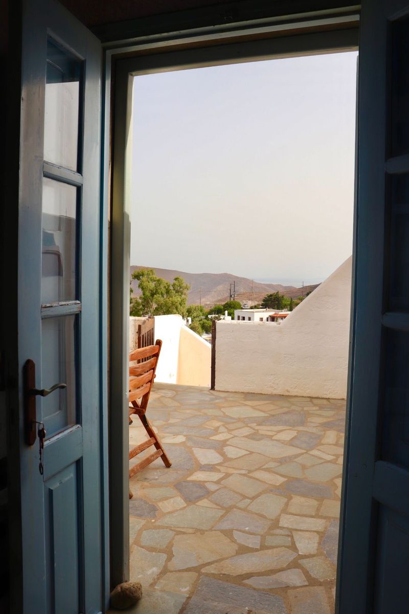 Οι πορτες και τα παραθυρα ειναι ξυλινα με το παραδοσιακο χρωμα της Χωρας και το δαπεδο απο πλακακι σε χρωμα κεραμιδι.