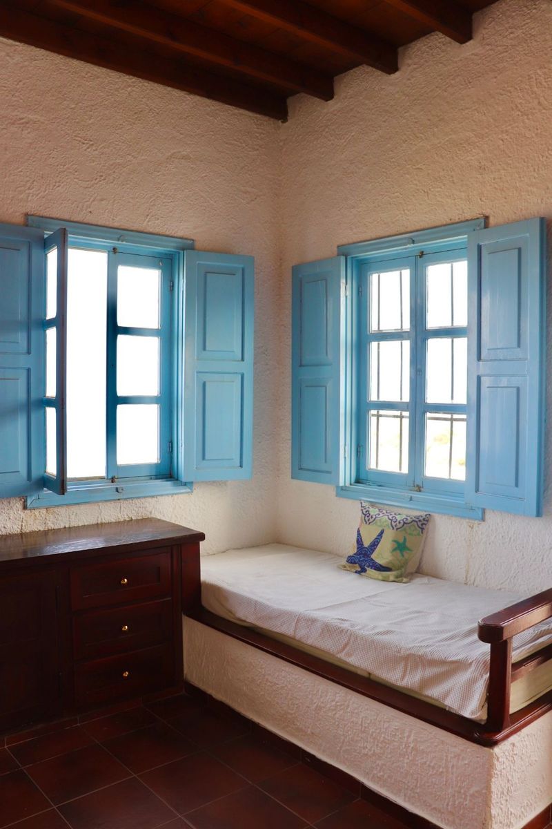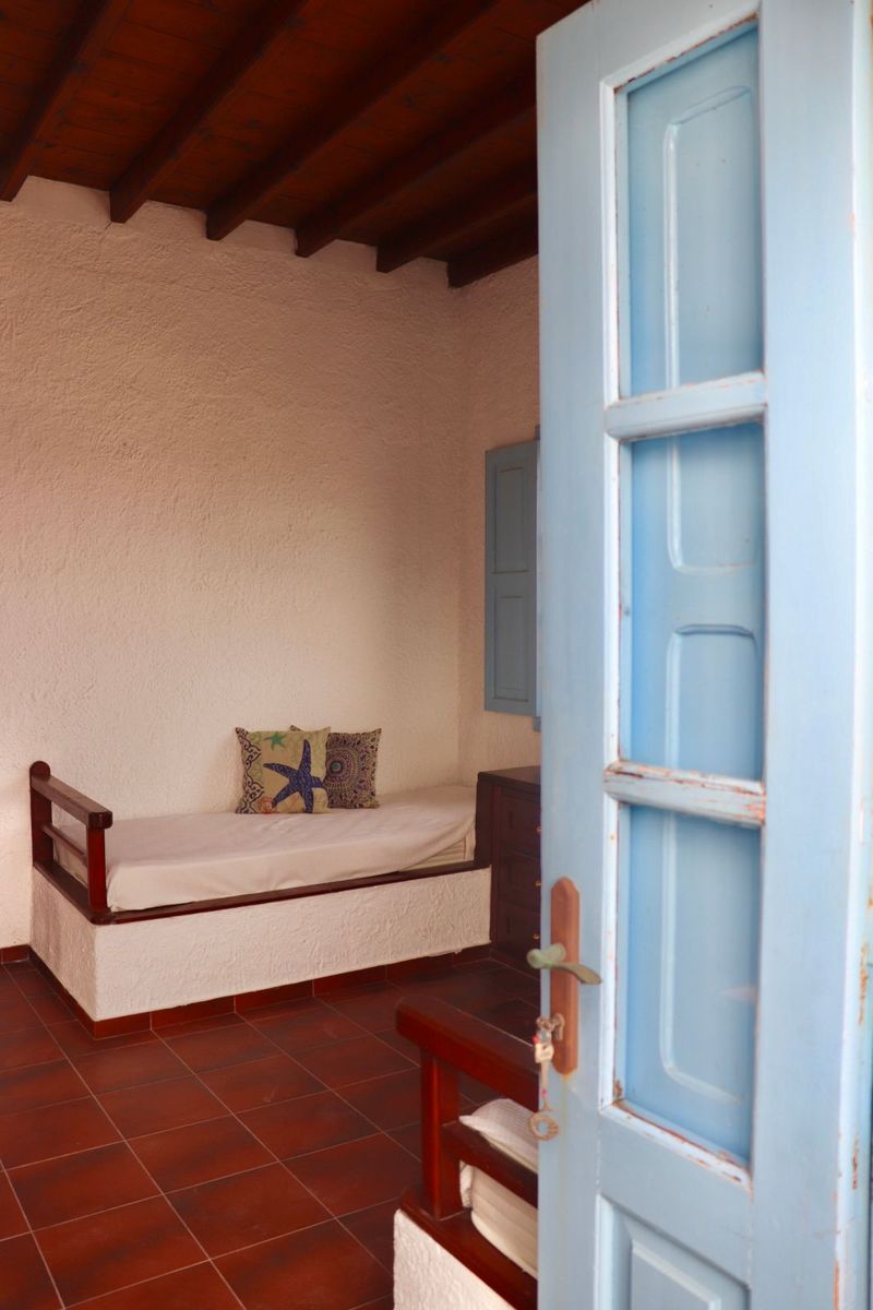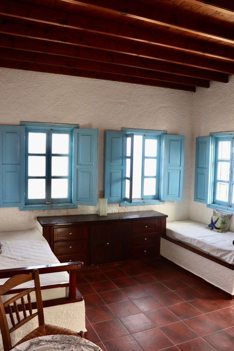 Τα ταβανια του σπιτιου εχουν σανιδες και τραβες και ειναι φτιαγμενα με τον παραδοσιακο τροπο οπως συνηθιζεται στην Χωρα της Πατμου.