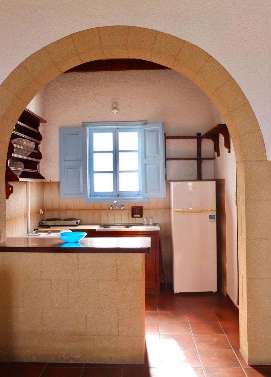 Στο κατω επιπεδο υπαρχει ενιαια τραπεζαρια-κουζινα με πασο και διαχωριστικο, με καμαρα παραδοσιακη καθως επισης και ενα μπανιο.