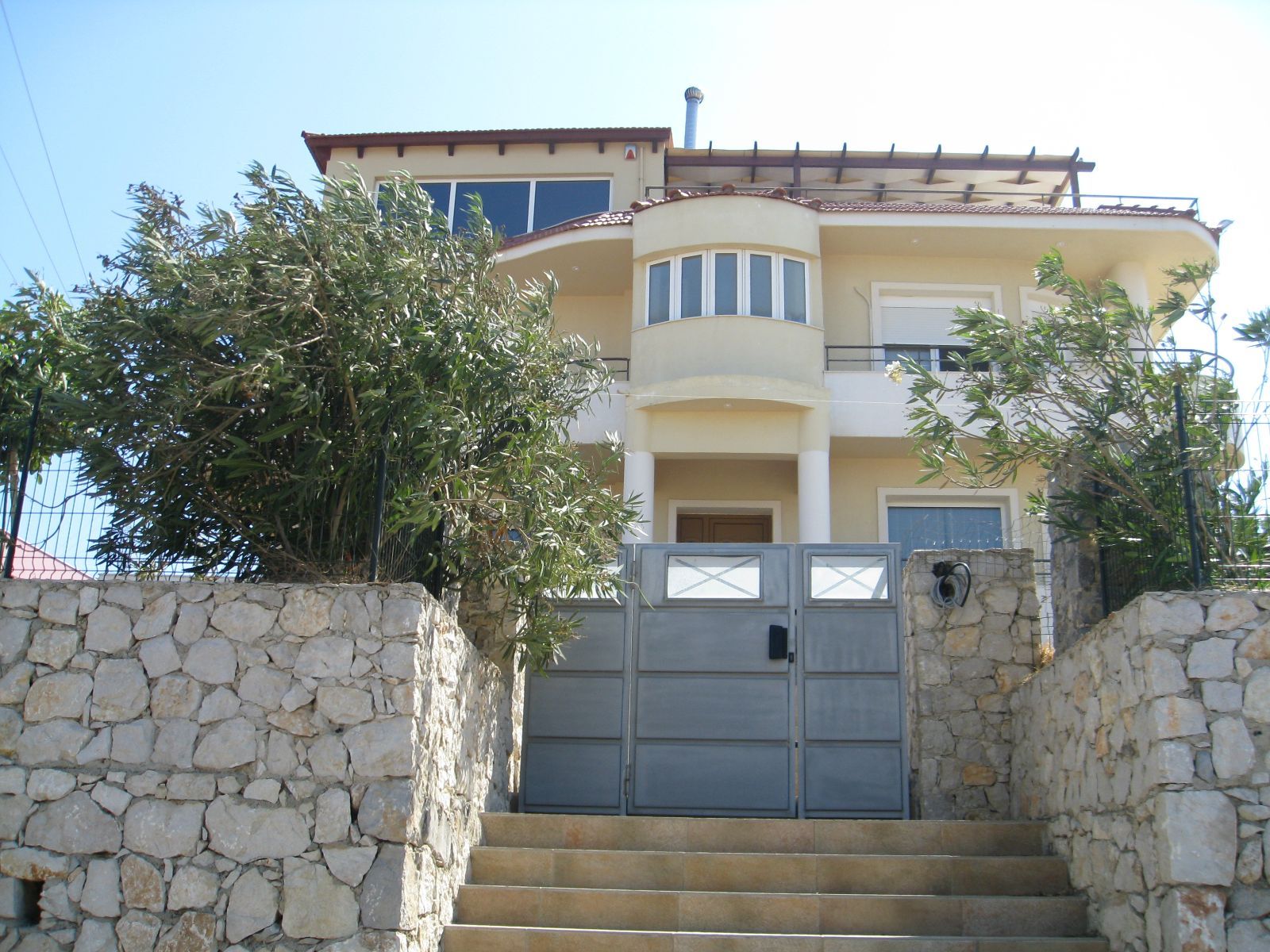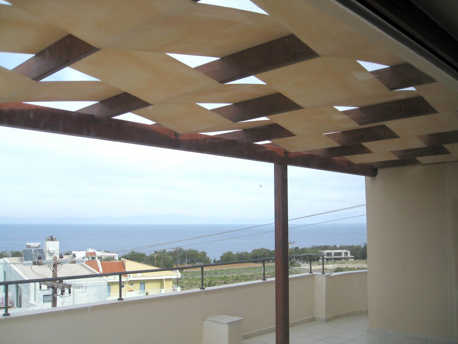 Η μεγάλη βεράντα του ορόφου, διαθετει πέργκολα για σκίαση καθως επισης μια καταπληκτική ανεμπόδιστη θέα στην θάλασσα.
