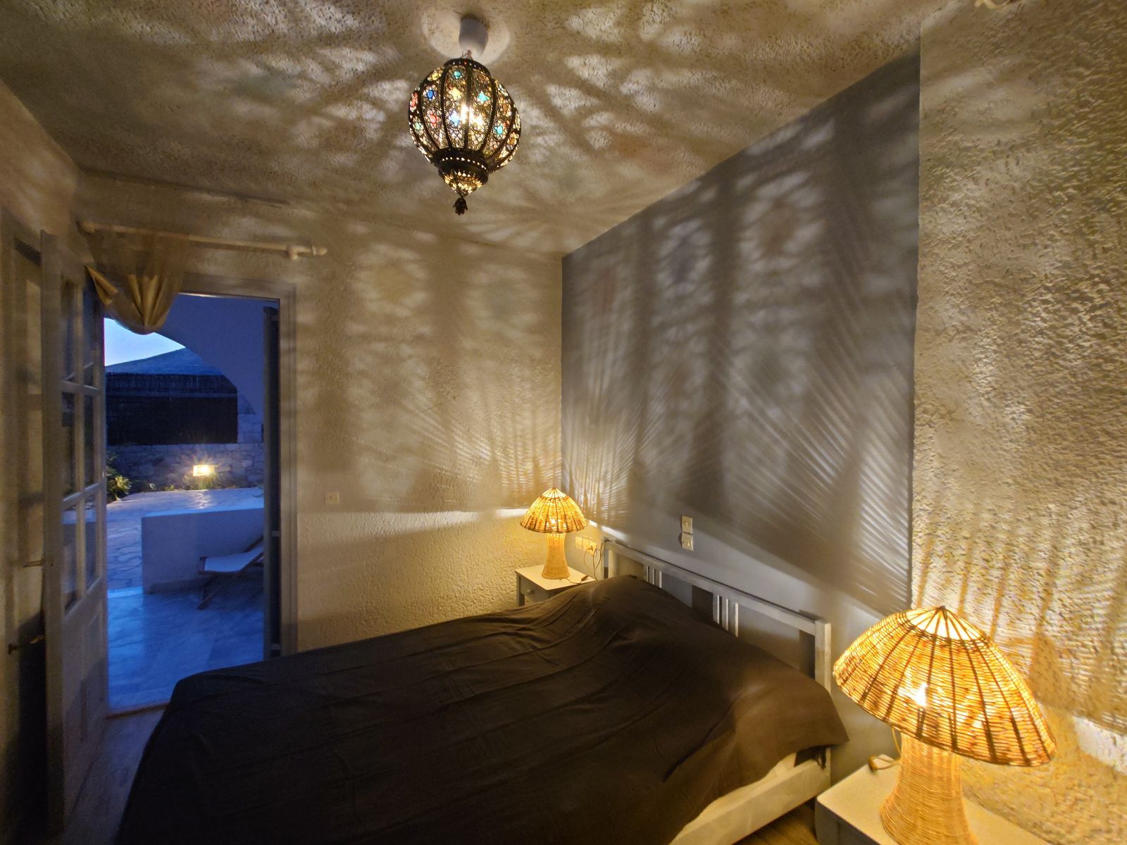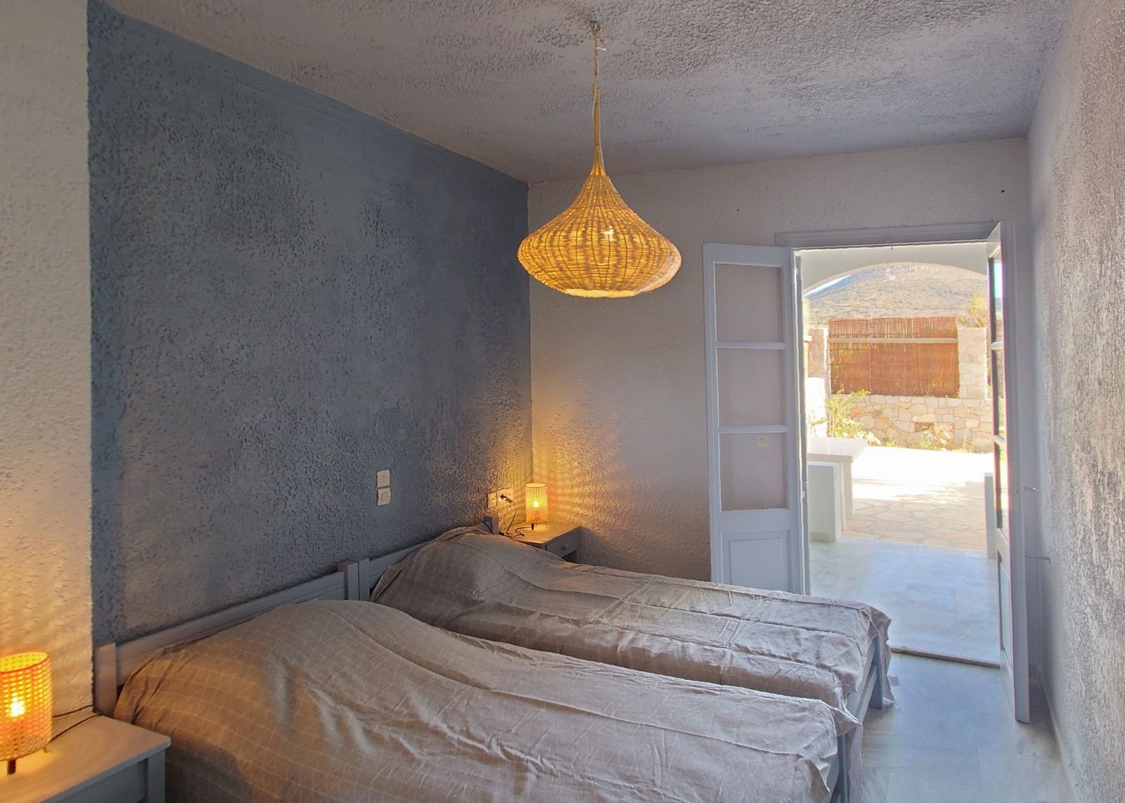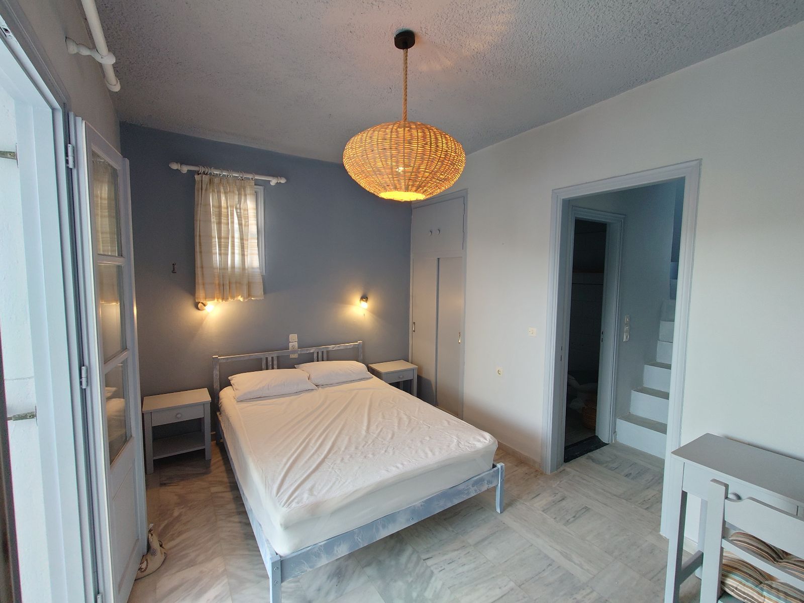Εμβαδόν 20 τ.μ. στον δεύτερο όροφο, με παραδοσιακό χτιστό κρεβάτι, λουτρό, εκτενείς βεράντες με πέργκολα και απεριόριστη πανοραμική θέα προς τη θάλασσα στα βόρεια και το εμβληματικό μοναστήρι της Χώρας στα νότια.