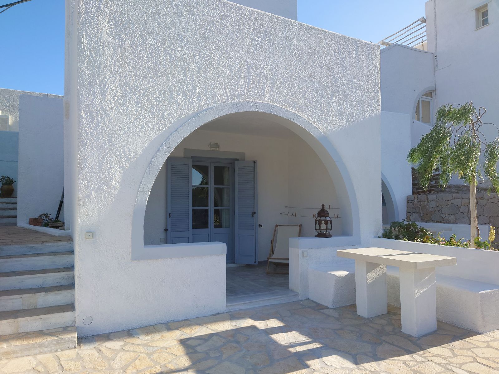 Παρότι απομονωμένο και ήσυχο, το ακίνητο βρίσκεται μόλις 10 λεπτά με τα πόδια από το λιμάνι της Σκάλας, το ζωντανό και κοσμοπολίτικο κέντρο της Πάτμου, με καταστήματα, εστιατόρια και όλες τις βασικές υποδομές. Ταυτόχρονα, είναι τοποθετημένο στο μέσον του νησιού έτσι ώστε μπορεί κανείς να έχει γρήγορη πρόσβαση σε όλες τις παραλίες και τα αξιοθέατα.