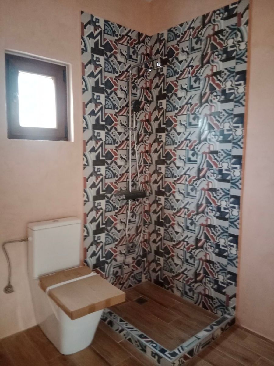 Το μπάνιο διαθέτει εντοιχισμένο ντους, παράθυρα και πόρτες με ηλεκτρικά κουφώματα και αντιολισθητικά πλακάκια δαπέδου.