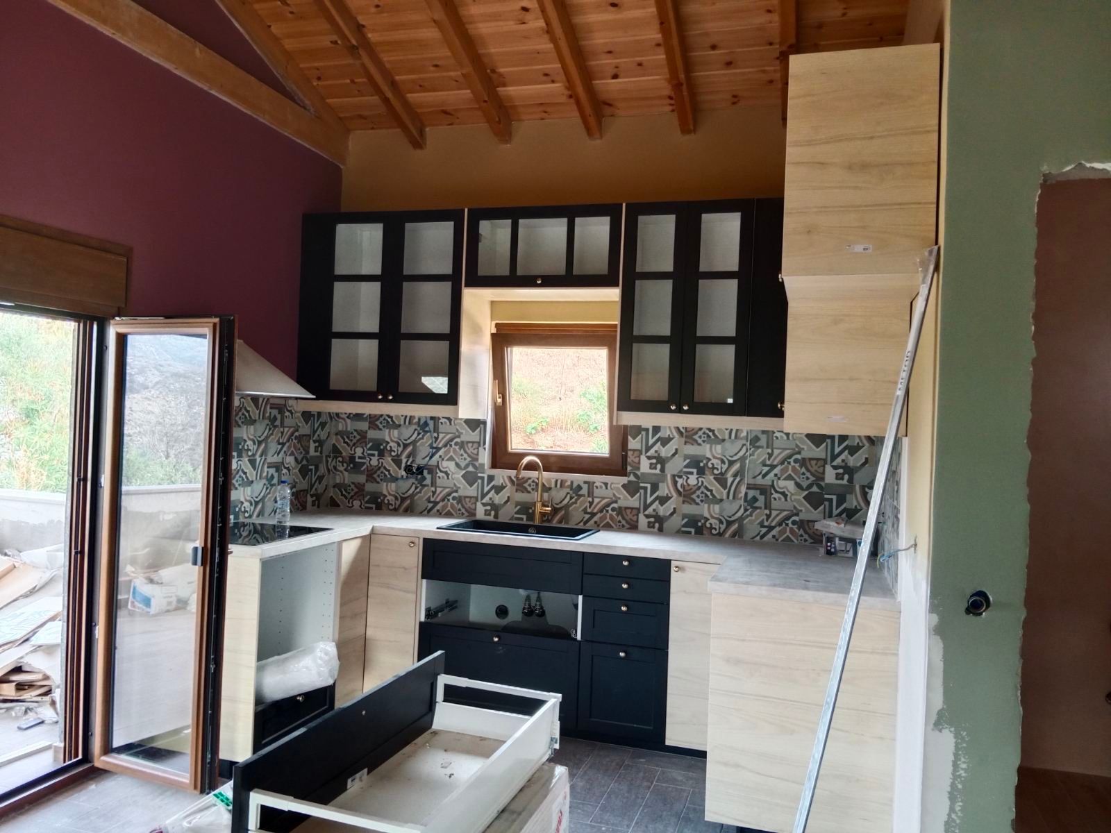 Τοποθετήθηκε θερμοπρόσοψη στο ισόγειο της κατοικίας και το ακίνητο περιφράχθηκε μερικώς με ελαφριά υλικά και τοιχοποιία.