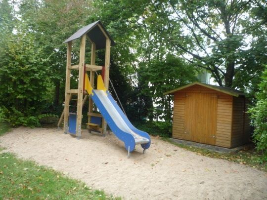Στο πίσω μέρος του σπιτιού είναι ένας πανέμορφος καταπράσινος κήπος με χώρο καθιστικού και παιδική χαρά.