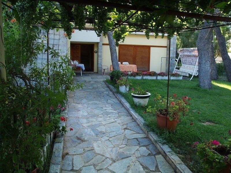 Η βιλα περιβάλλεται εξ ολοκληρου απο ένα φαρδύ διάδρομο αυλής.
