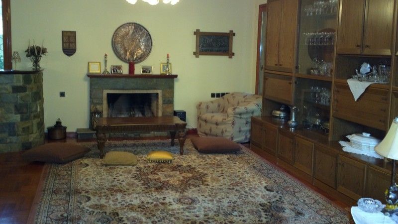 Το ισόγειο απαρτιζεται απο 250τ.μ διαθέτοντας ένα σαλόνι κεντρικό με τζάκι γύρω στα 45τ.μ πετρινης κατασκευης με πρόσβαση άμεση με τον κήπο εκτασης 300τ.μ ,διαθετει επισης ένα δεύτερο σαλόνι με τζάκι, κουζινα και τραπεζαρία για 10 ατόμα.