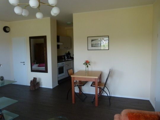 Το προσβφερόμενο επιπλωμένο διαμέρισμα βρίσκεται στο ισόγειο. Τα 35 τετραγωνικά μέτρα μεγάλα δωμάτια που χωρίζονται από ένα μοντέρνο διαχωριστικό δωματίου στο σαλόνι και υπνοδωμάτιο. Το μπάνιο έχει μόλις ανακαινιστεί και είναι εξοπλισμένα με σύγχρονες εγκαταστάσεις καθώς επισης και μια πλήρως εξοπλισμένη κουζίνα με ψυγείο, ηλεκτρική κουζίνα και απορροφητήρας .