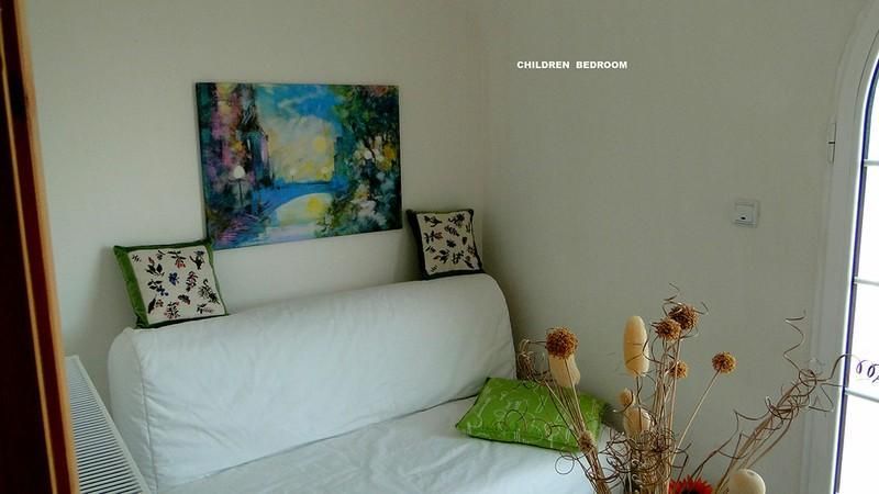Ο πάνω όροφος αποτελείται από τρία υπνοδωμάτια (το ένα με δικό του μπάνιο ) .