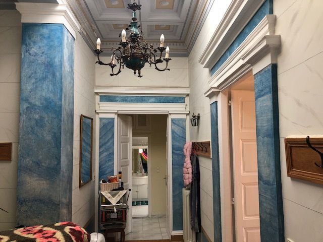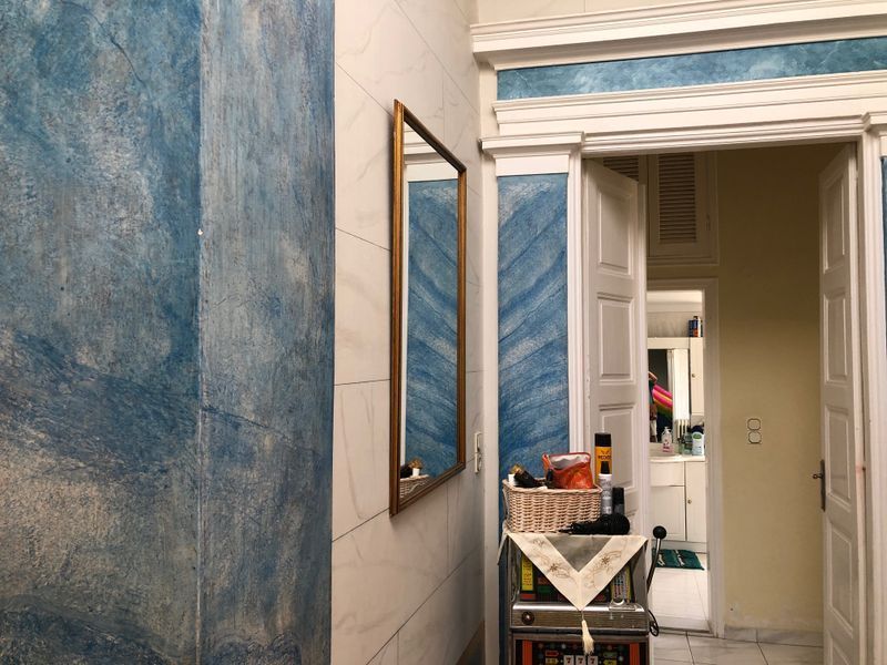 Τα δαπεδα του σπιτιου ειναι εν μερει απο ξυλο, μωσαικο και μαρμαρο