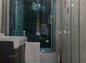 Το εσωτερικό μπάνιο είναι διακοσμημένο με όμορφα πλακάκια και έχει ένα πολυ-λειτουργικό ντους (υδρομασάζ), ένα νεροχύτη και τουαλέτα.