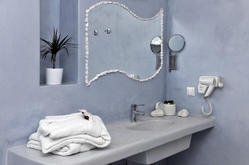 Στη βίλλα Asterias θα βρείτε δυο μπάνια, ένα στο ισόγειο και ένα στον όροφο τα οποία είναι με χτιστή ντουζιέρα και νιπτήρα όπου εκεί θα βρείτε προιόντα περιποίησης καθώς και πετσέτες προσώπου ,μπάνιου, μπουρνούζια και παντόφλες .Ο εξωτερικός χώρος της βίλλας αποτελείται από μια μεγάλη βεράντα 50 τμ στο ισόγειο και δυο βεράντες στον όροφο για την απόλυτη χαλάρωση σας. Όλες οι βεράντες έχουν υπέροχη θέα στο Αιγαίο πέλαγος.
