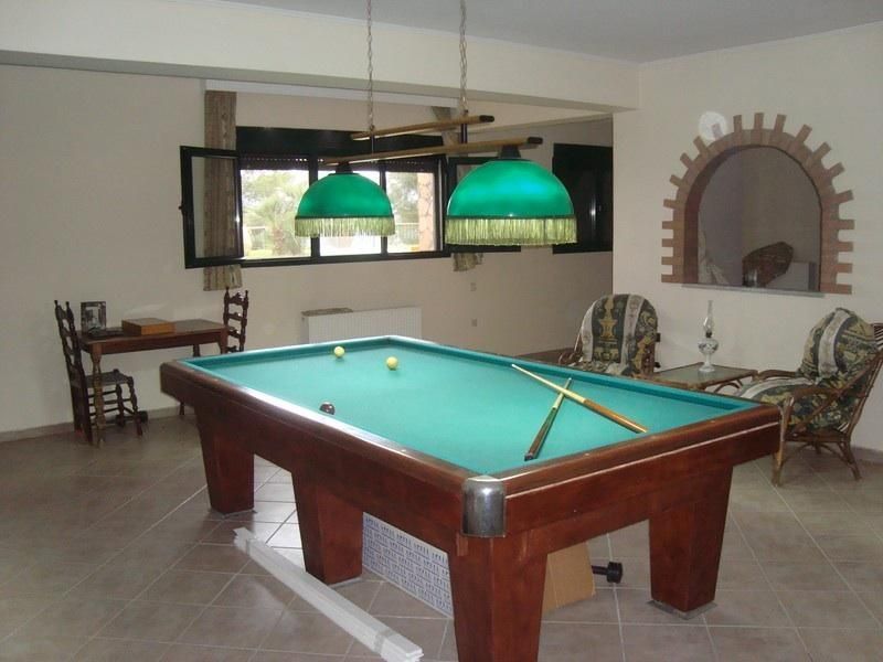 Με το ασανσέρ ή τις σκάλες μπορει κανεις να μεταβει στο χαμηλότερο επίπεδο ( ισόγειο ) του σπιτιού , όπου υπαρχει το play room και ένα μεγάλο γαλλικου τύπου μπιλιάρδο..