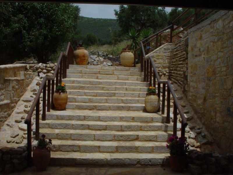Διαμορφωμένος χώρος σε ανισόπεδα επίπεδα με 700 τ.μ. πετρόχτιστες διαχωριστικές μάντρες και πλακόστρωτα επίπεδα 300 τ.μ.