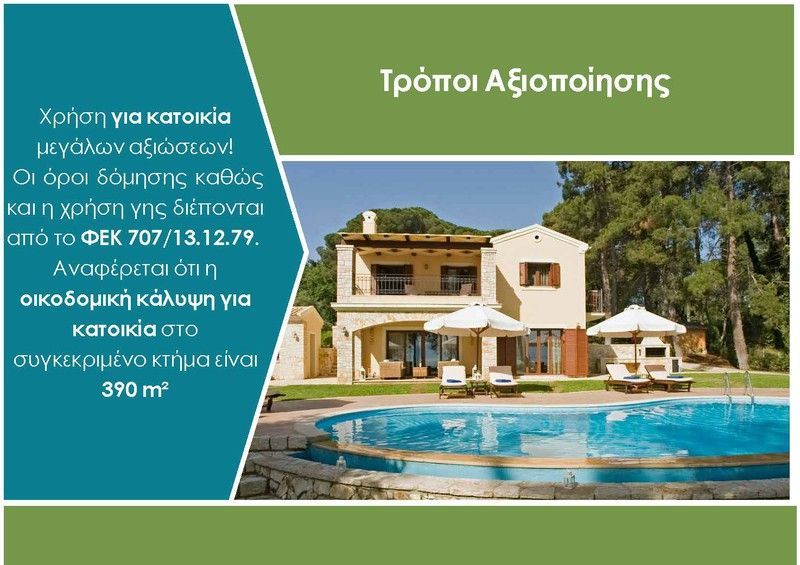Η οικοδομική κάλυψη για κατοικία στο συγκεκριμένο κτήμα είναι 390 τ.μ.