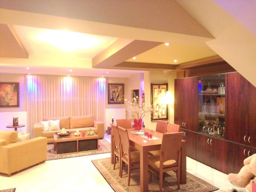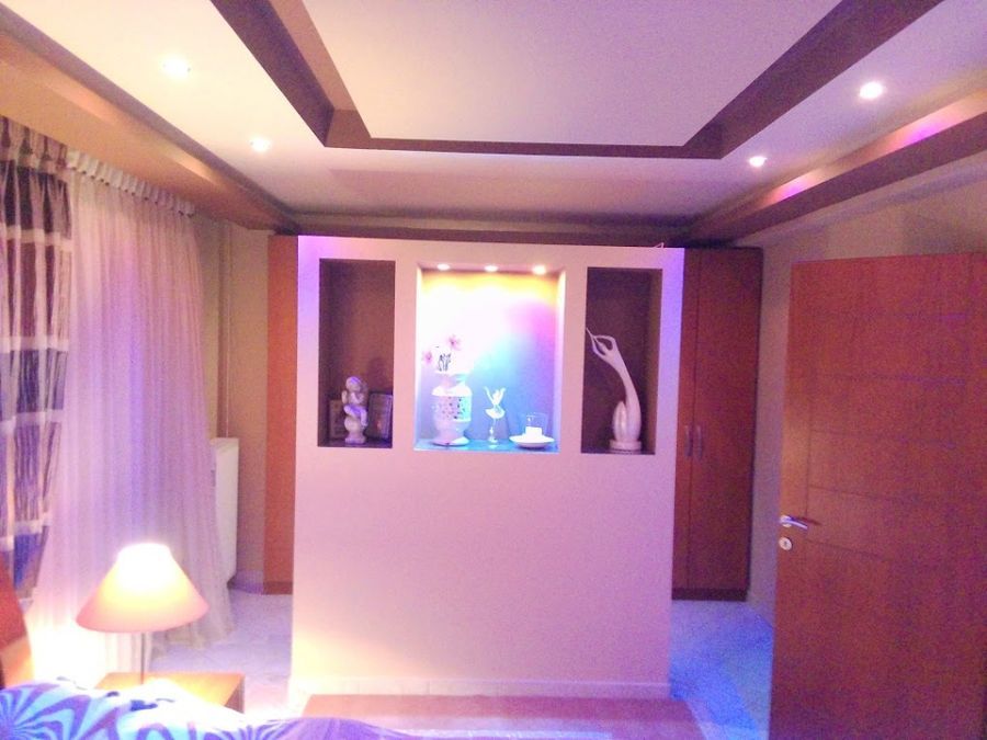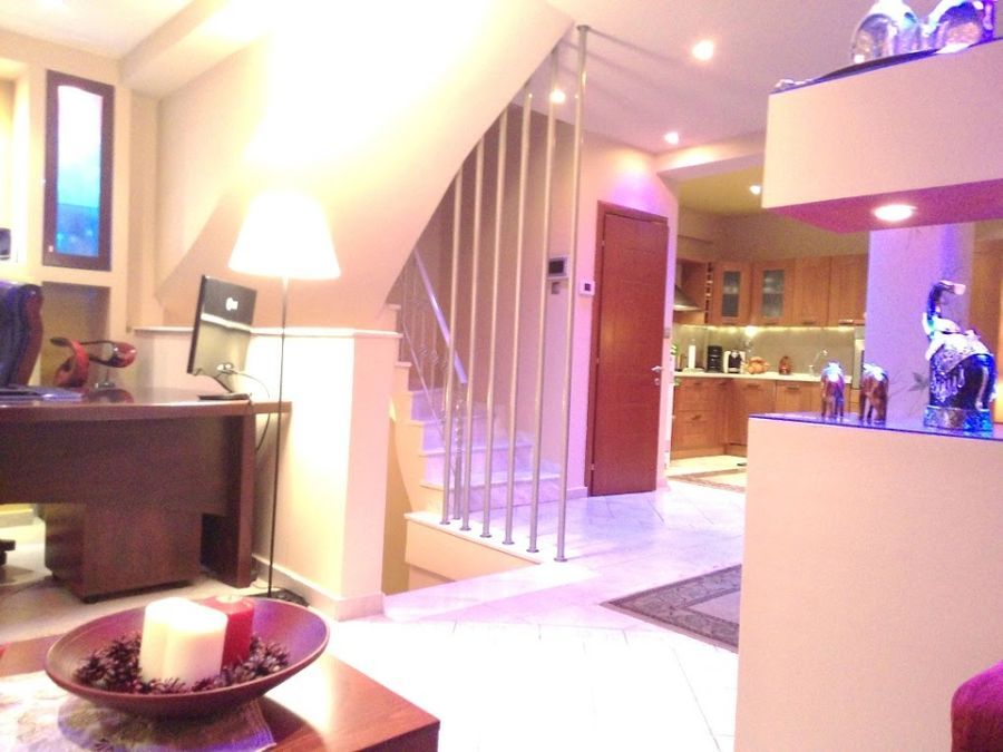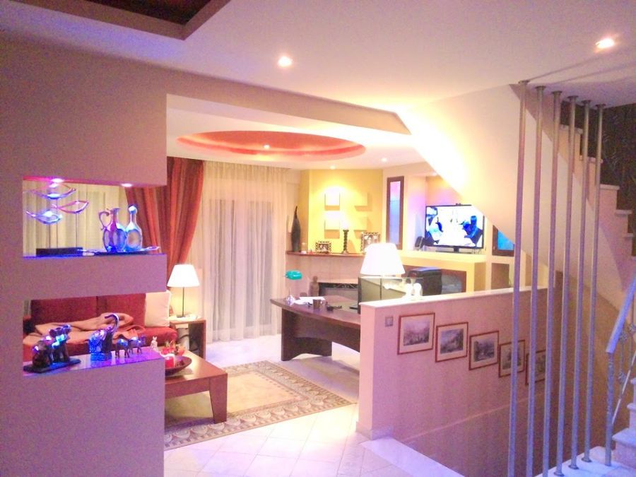 Σύστημα συναγερμού οχτώ ζωνών με πληκτρολόγιο σε κάθε όροφο, δύο θυροτηλεοράσεις, θέρμανση πετρέλαιο με ανεξάρτητους θερμοστάτες ανά όροφο θερμοσίφωνας - boiler και δεξαμενή χιλίων πεντακοσίων λίτρων. Όλο το σπίτι είναι σπατουλαριστό και όλα τα ταβάνια είναι διακοσμημένα με γυψοσανίδες και spots. Δύο τζάκια, τέσσερις ντουλάπες.