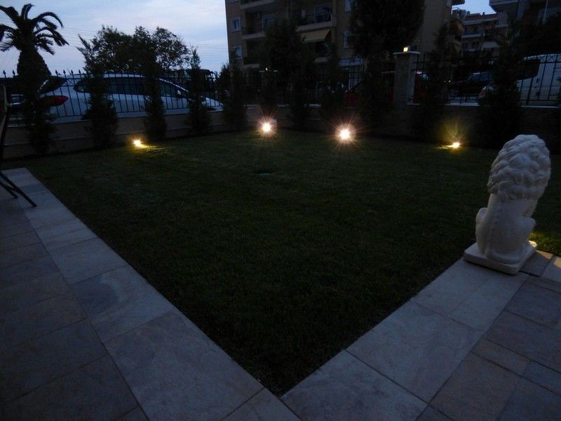 αυτόματο πότισμα και ένα κιόσκι με γωνιακό καναπέ.