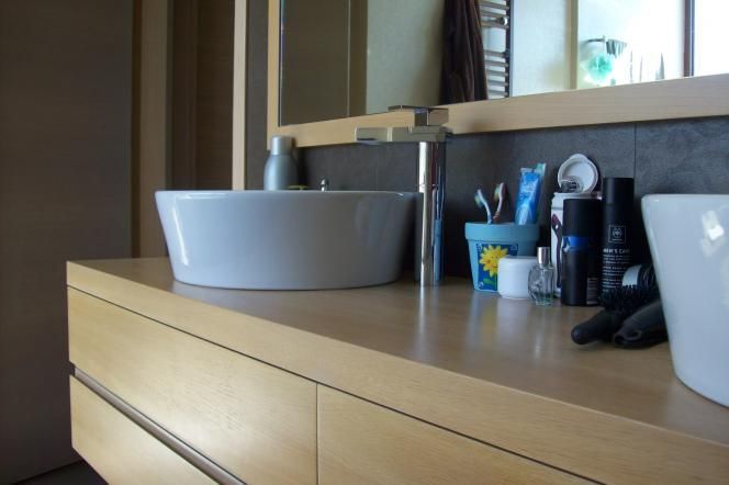 Το καθε ενα σπιτι εχει 3 Υ/Δ (το ενα master, με δικο του dressroom στον πανω οροφο καθως και μεγαλο μπανιο με τεραστια μπανιερα υδρομαζαζ, διπλους νιπτηρες και ακριβα αξεσουαρ.