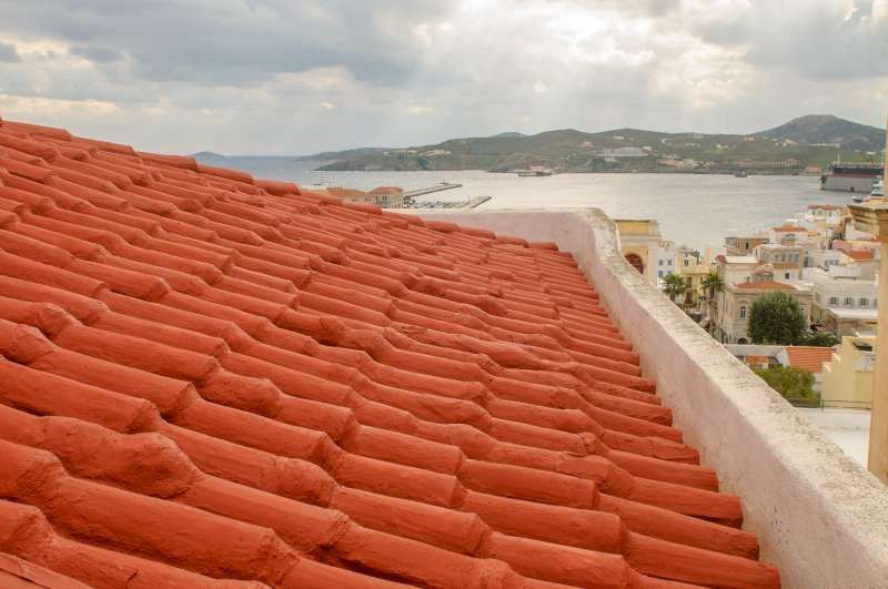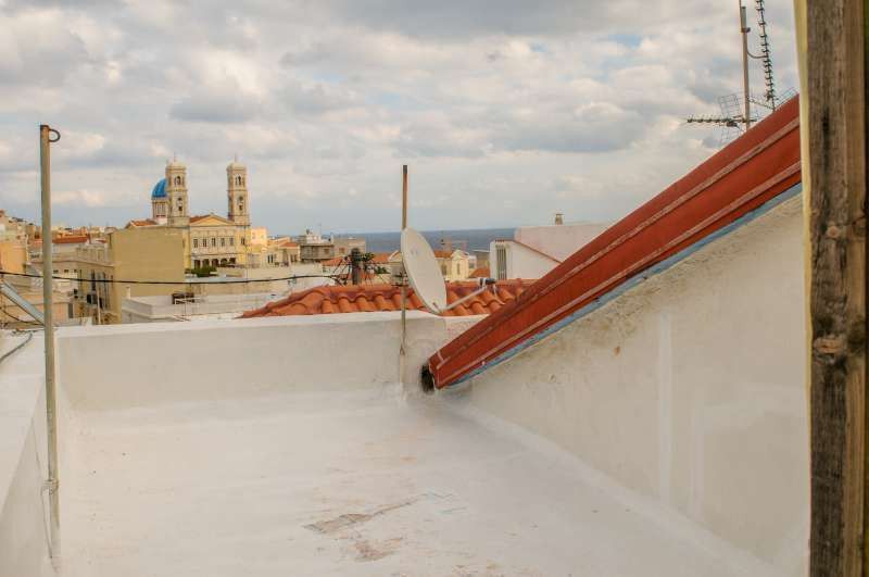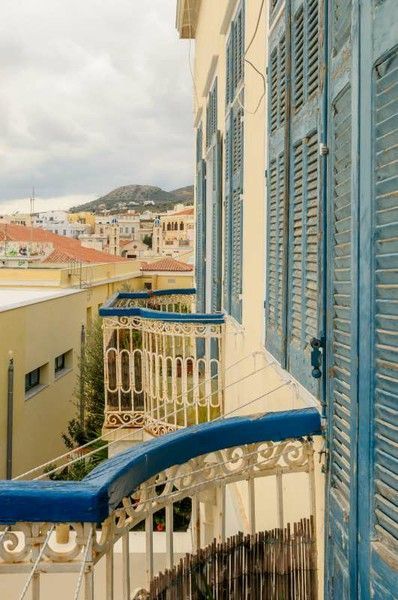 Διαθετει απεριοριστη θεα απο τα δυο νοτια μαρμαρινα μπαλκονια προς το λιμάνι της Ερμούπολης και τα γύρω νησιά.