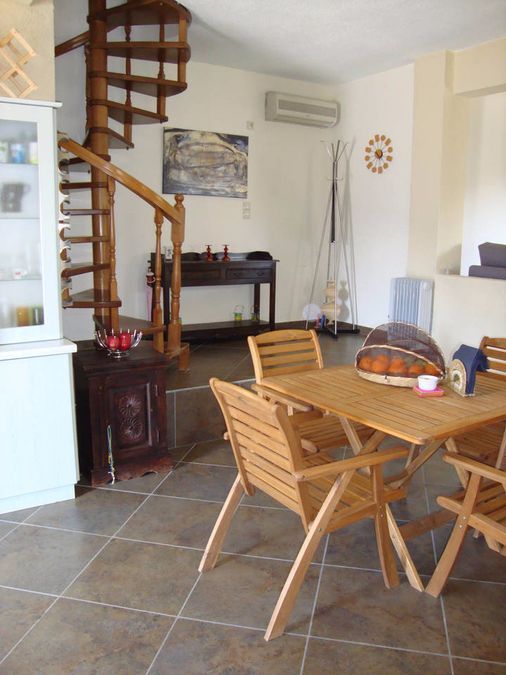 Η κατοικια διατίθεται εν μερει επιπλωμένη , με κάποια από τα έπιπλα και τις συσκευες (όπως η εντοιχιζόμενη κουζίνα) αλλά δε διατίθεται πλήρως επιπλωμένη.