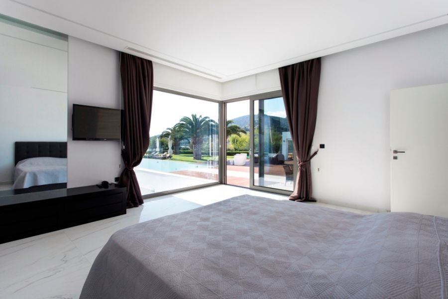 Η Βιλα περιβαλλεται απο μάντρα 110 μέτρων, καλυπτεται ολοκληρωτικα με συστημα συναγερμου και το οικοπεδο καλυπτεται απο φοίνικες, λουλούδια και αλλα ποικιλα δέντρα..