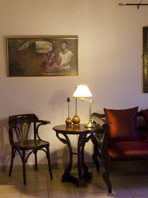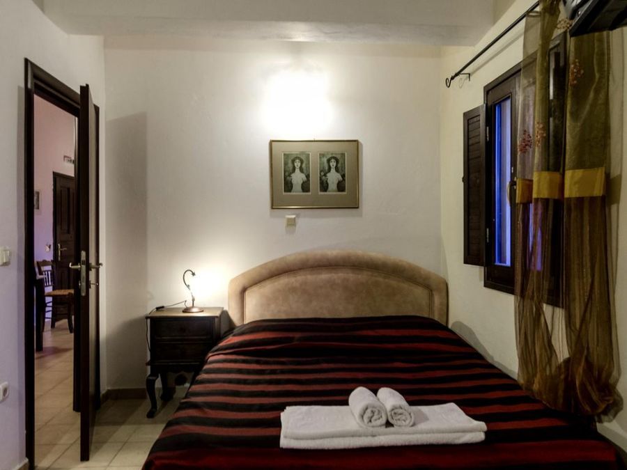Τα κλιματιζόμενα διαμερίσματα διαθέτουν έπιπλα από σκούρο ξύλο, πέτρινους τοίχους
