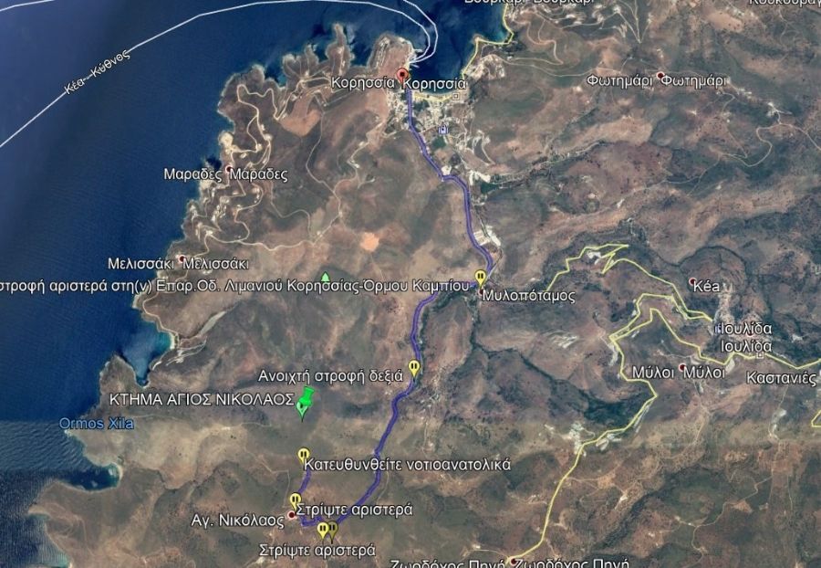 > ΚΟΡΡΗΣΙΑ (ΛΙΜΑΝΙ ΚΕΑΣ) 5,7 ΧΛΜ (13 ΛΕΠΤΑ ΜΕ ΟΧΗΜΑ)