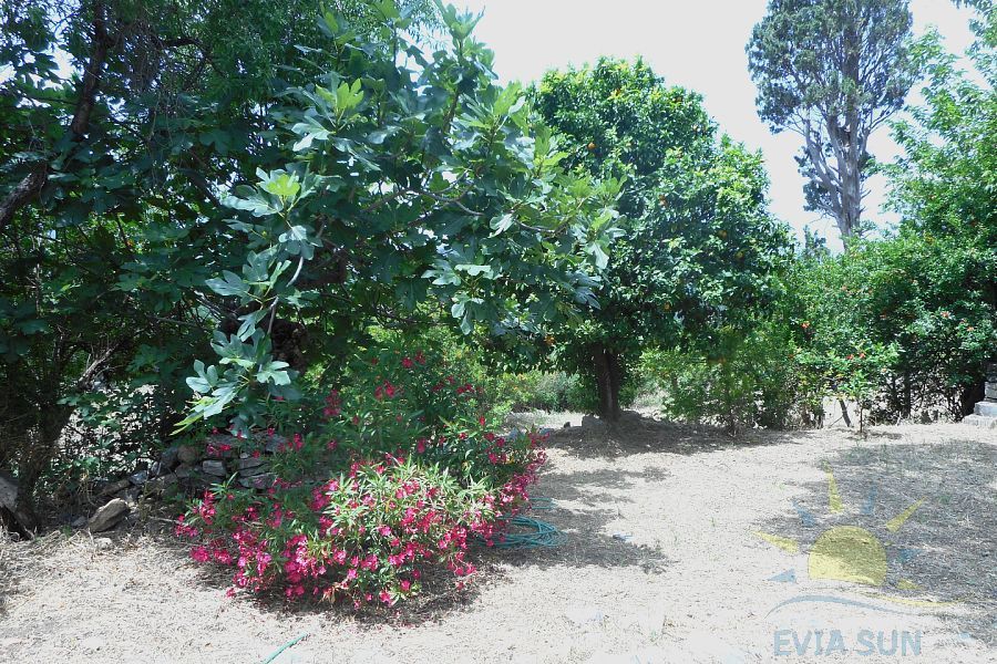 Το οικοπεδο περιβαλλεται απο ποικιλα δενδρα ( Ροδιες, συκιες, νερατζιες, πορτοκαλιες κ.α.)
