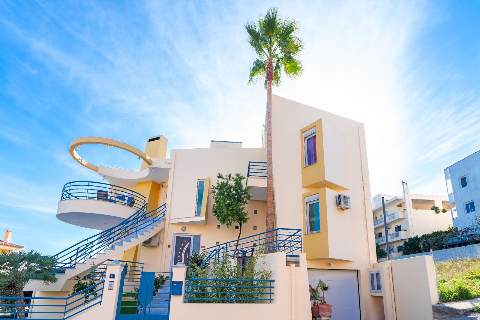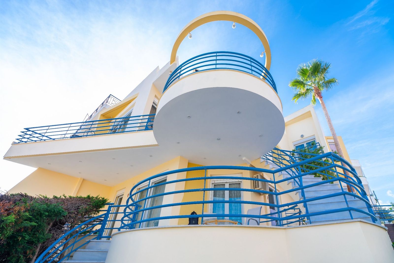 Περιβάλλεται από όμορφο κήπο καθώς και μεγάλες βεράντες ή μπαλκόνια ,όπου μπορεί κανείς να χαλαρώσει ή να γευματίσει ατενίζοντας τη θάλασσα, τις απέναντι