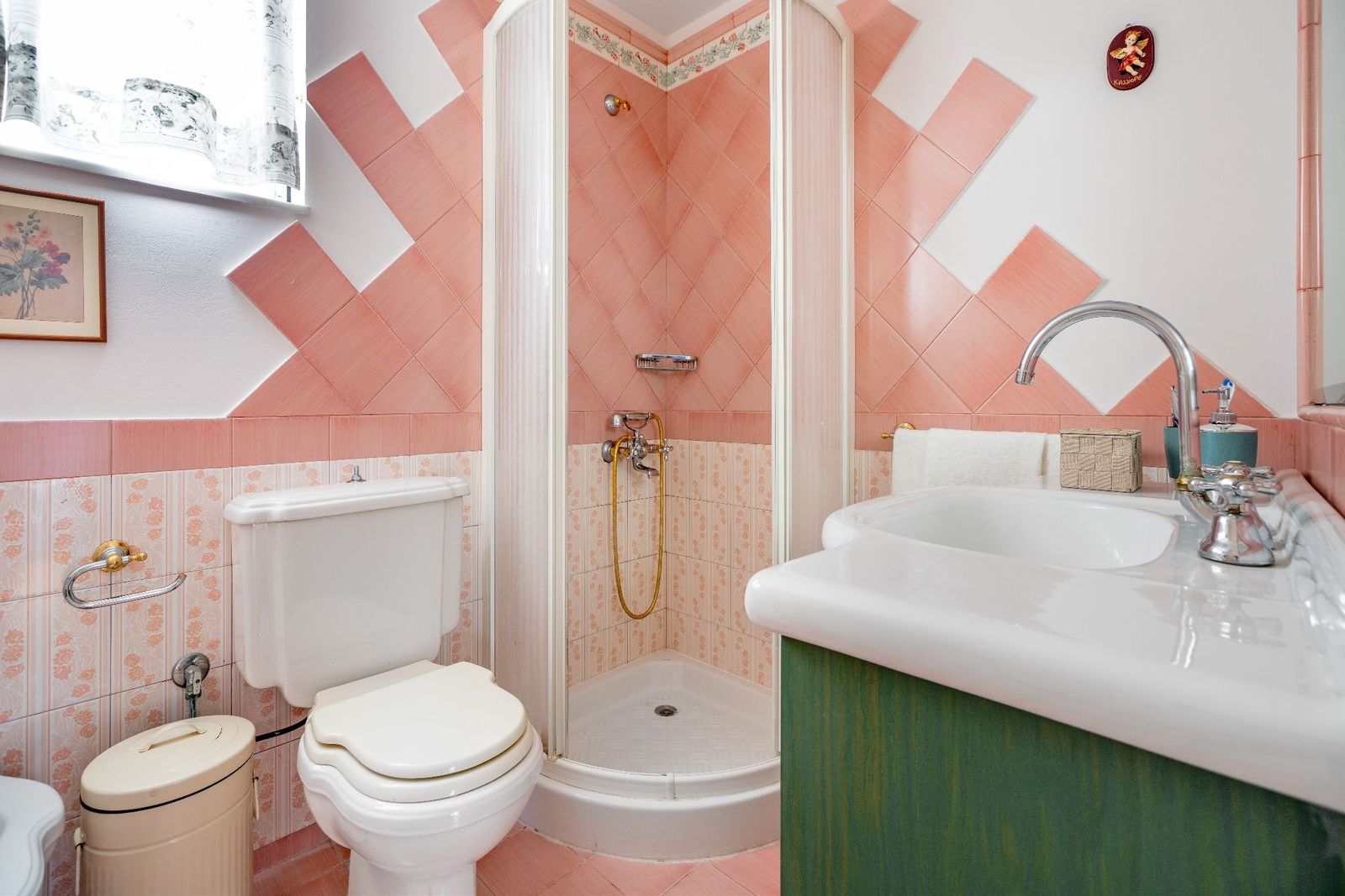 διακοσμημένη με Ιταλικά πλακάκια και αξεσουάρ του ντιζάινερ Piero Fornasetti.