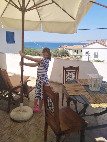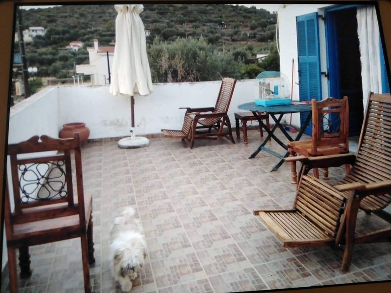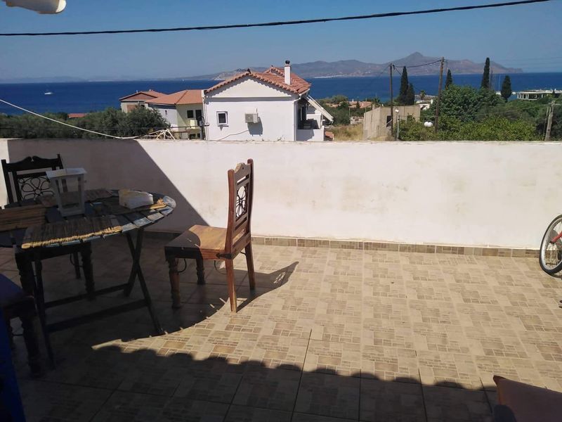 και μια μεγαλη βεραντα, με φανταστικη θεα στην θαλασσα.