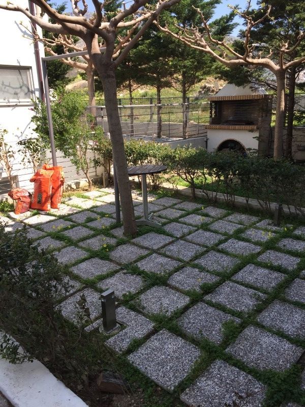 >Κηπος μεγαλυτερος στο πισω μερος του σπιτιου, με μουριες και μικρο κηπακι μπροστα,