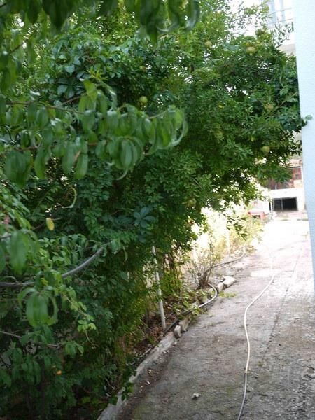 Copac plantat cu pomi fructiferi, pini, măslini și zonă de gazon mare