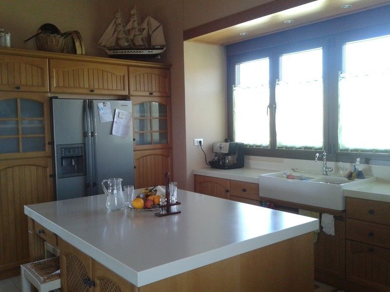 Bucătăria / Zona de luat masa: 6m x 5m cu aparate și mecanisme moderne de bucătărie, insulă centrală, blat autentic Corian, chiuvetă porțelan chiuveta dublă și unități din lemn de fag.
